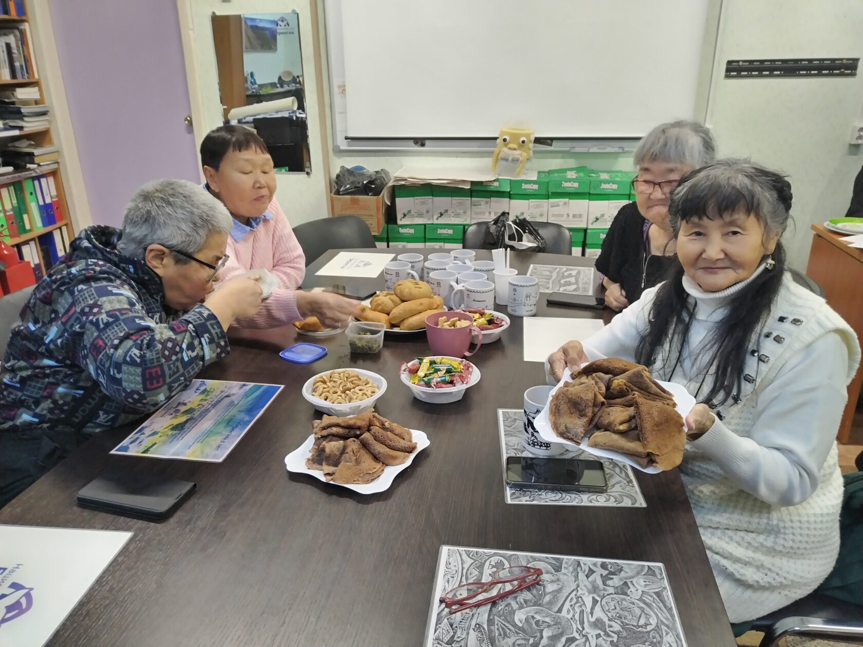 Участникам клуба «Эйн'эу» была представлена презентация о моржах, после которой состоялась викторина. Завершилось мероприятие представлением театра теней, подготовленным сотрудниками парка, и традиционным чаепитием с блинами с брусникой, которые, как заметили участницы, получились под «цвет кожи моржа».